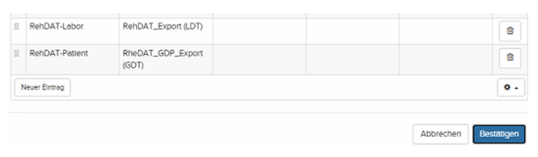 3. Funktion „Datenbank“ im GDT-Export öffnen und wie im Abbild einstellen.